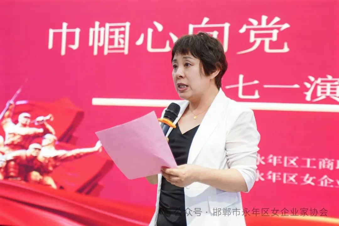 為慶祝中國(guó)共產(chǎn)黨成立103周年,回顧黨的光輝歷程,增強(qiáng)女企業(yè)家的榮譽(yù)感和使命感,為女企業(yè)家提供展示風(fēng)采、交流學(xué)習(xí)的平臺(tái),凝聚女性力量,推動(dòng)全區(qū)女企業(yè)家在永年經(jīng)濟(jì)社會(huì)發(fā)展中發(fā)揮更大的作用,6月29日下午,永年區(qū)女企業(yè)家協(xié)會(huì)聯(lián)合永年區(qū)工商聯(lián)、永年區(qū)婦聯(lián)舉辦“巾幗心向黨 筑夢(mèng)新時(shí)代”“慶七一”演講比賽。